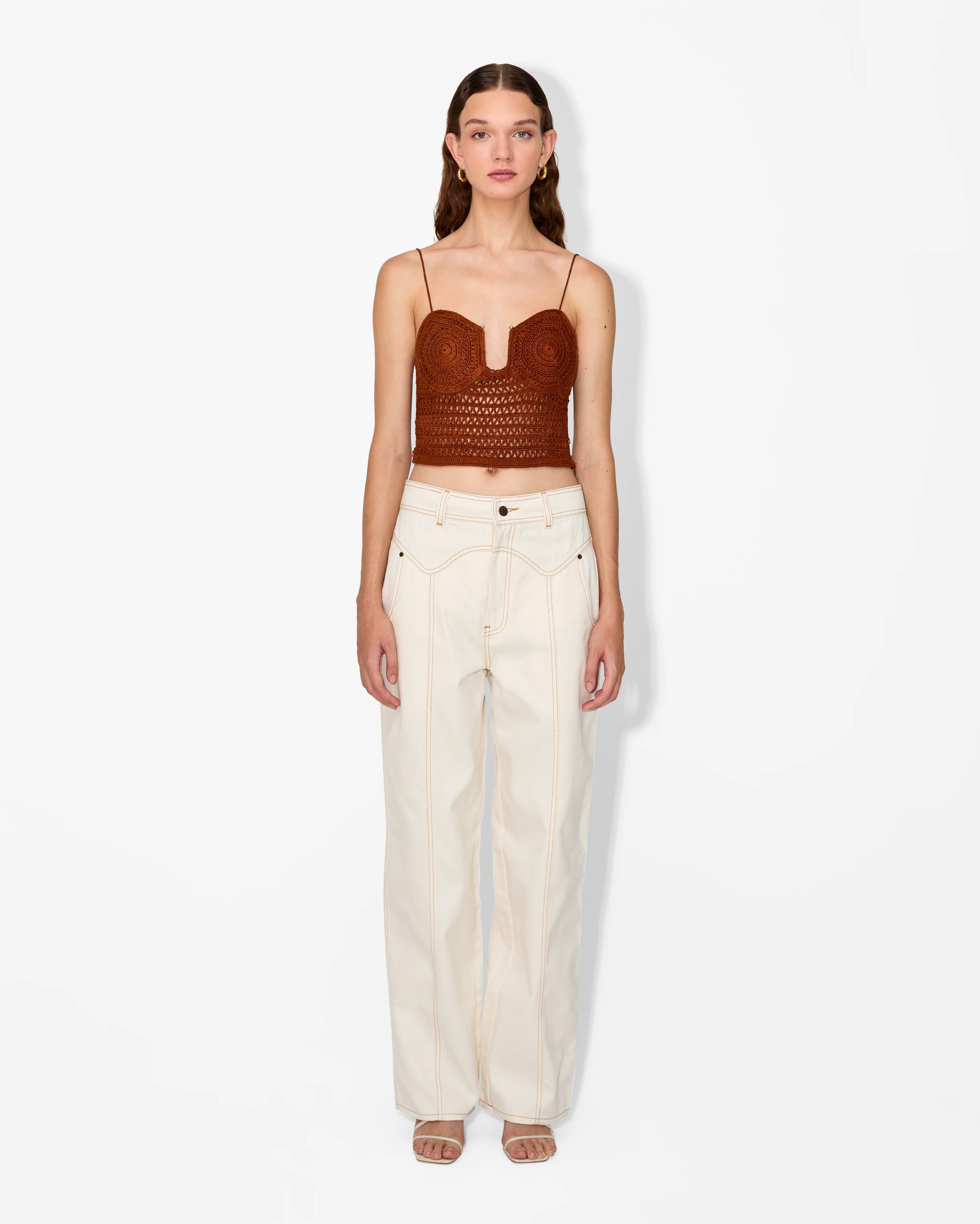 The top is crafted with adjustable spaghetti straps that provide a customized fit, while the V-neckline adds a flattering touch to the overall design. The rich brown color is versatile and pairs well with various outfits, making it an essential piece for warmer months.